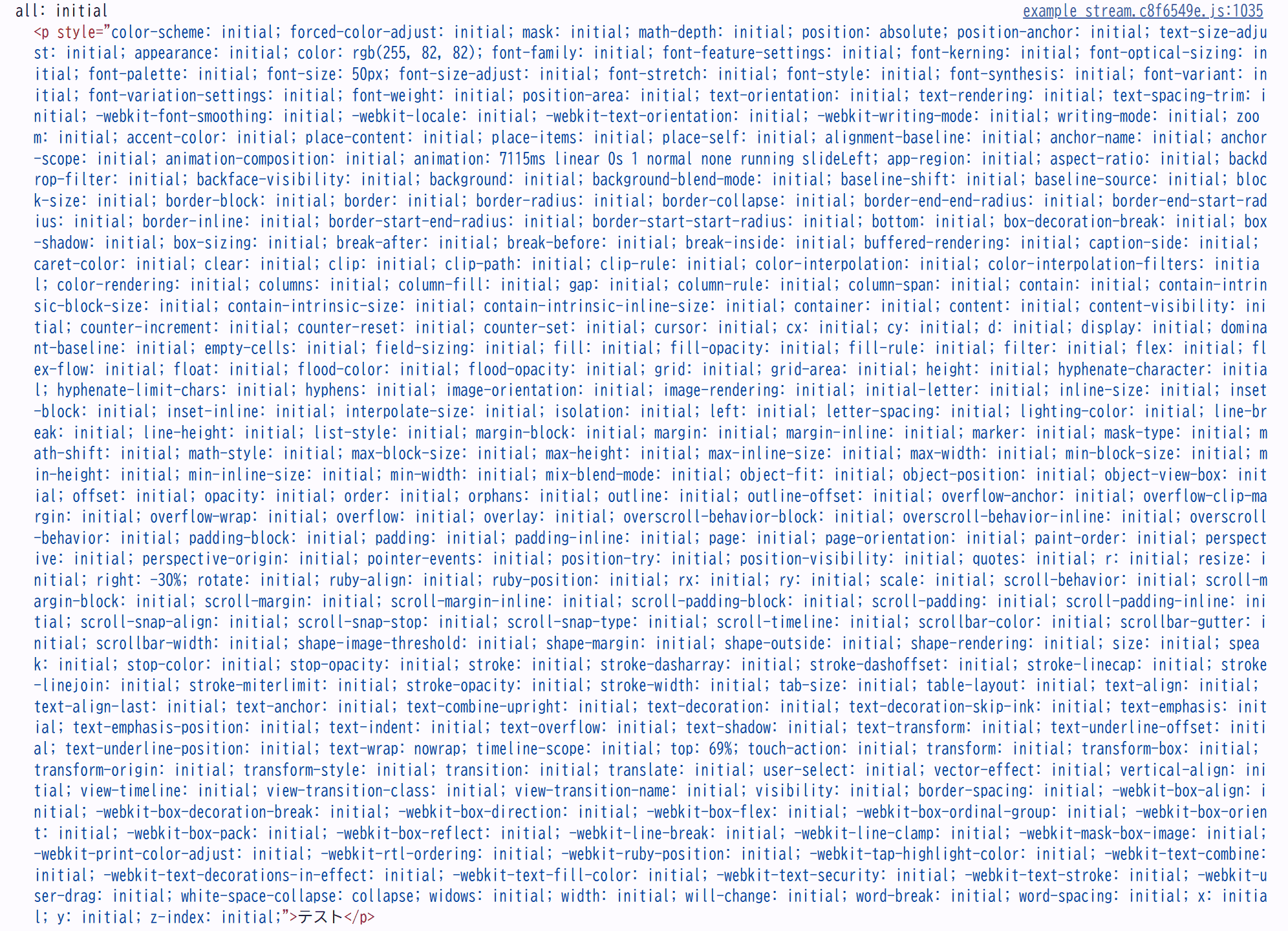 <div style="all: initial; color: red;"> この要素はすべてのスタイルが初期値にリセットされています </div>initialはすべてリセット