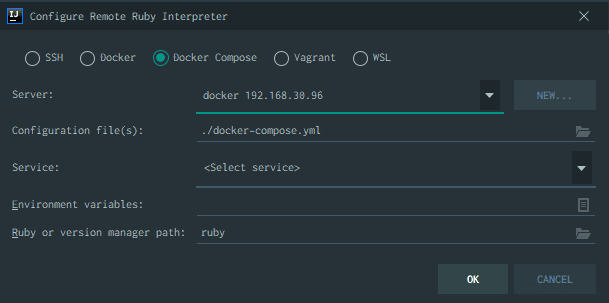 service docker startProject Structure -> + -> Add Ruby SDK