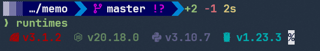 代わりに次のようなコマンドを用意し実行したら現在のディレクトリでの言語ランタイムのバージョンが分かるようにした