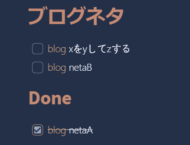 - [ ] [[blog]] xをyしてzする- コードブロックの中身